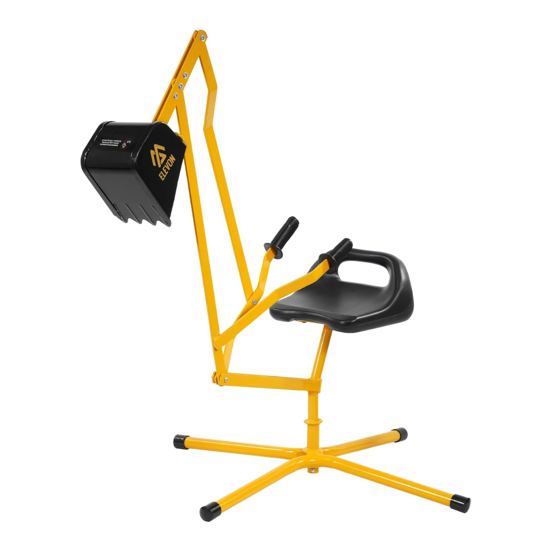 Elevon Sand Digger Kids Excavator Ride On Toy, Beach Toys Outdoor Sandbox Toy Digger, Steel Excavator Crane Rotates 360 with Stabilizing Base, Sand Toys Backyard Sandbox, Dirt and Snow – Yellow