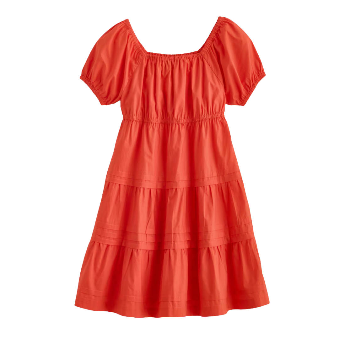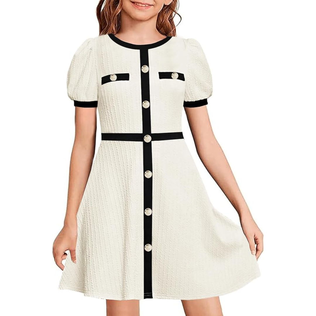 YOVION Girls Summer Dress Puff Sleeve Crewneck Button Color Block Casual Party Dresses with Pockets
