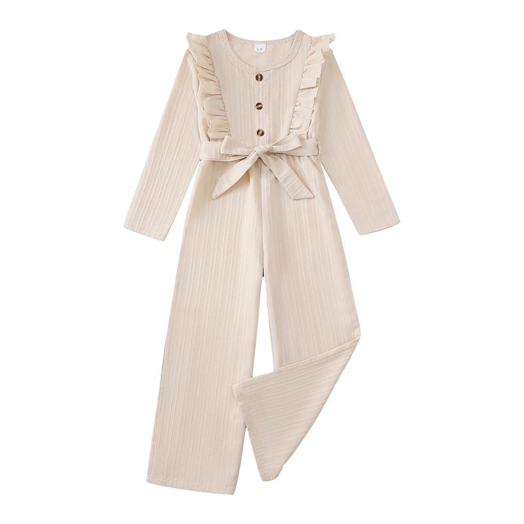 Girls Jumpsuit Kids Tween Clothes Fashion Ruffle Wide Leg Belted Romper